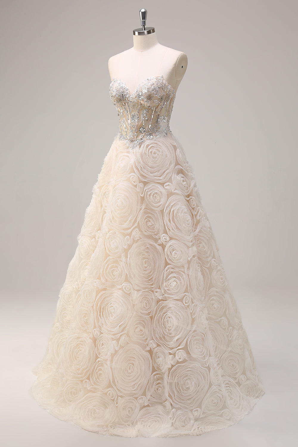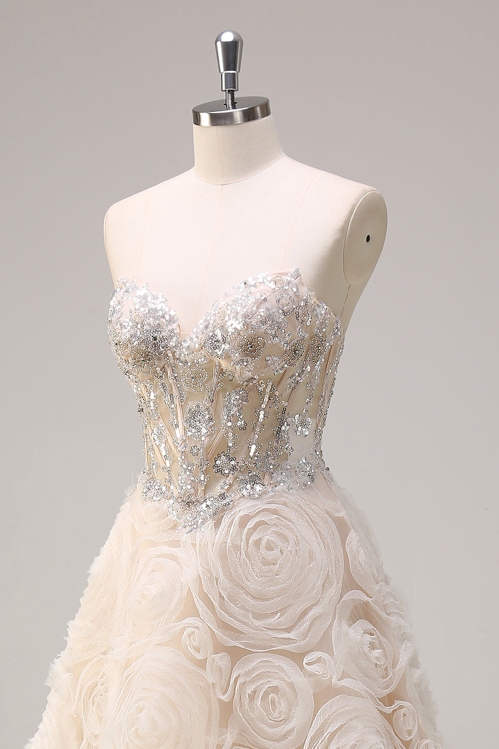 Shallow Champagne Flower A Line Sequined Corset Prom Dress